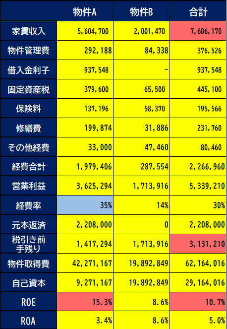 特に物件Aはレバレッジ効果が働き、元本返済を含めると利回りはさらに向上しています。