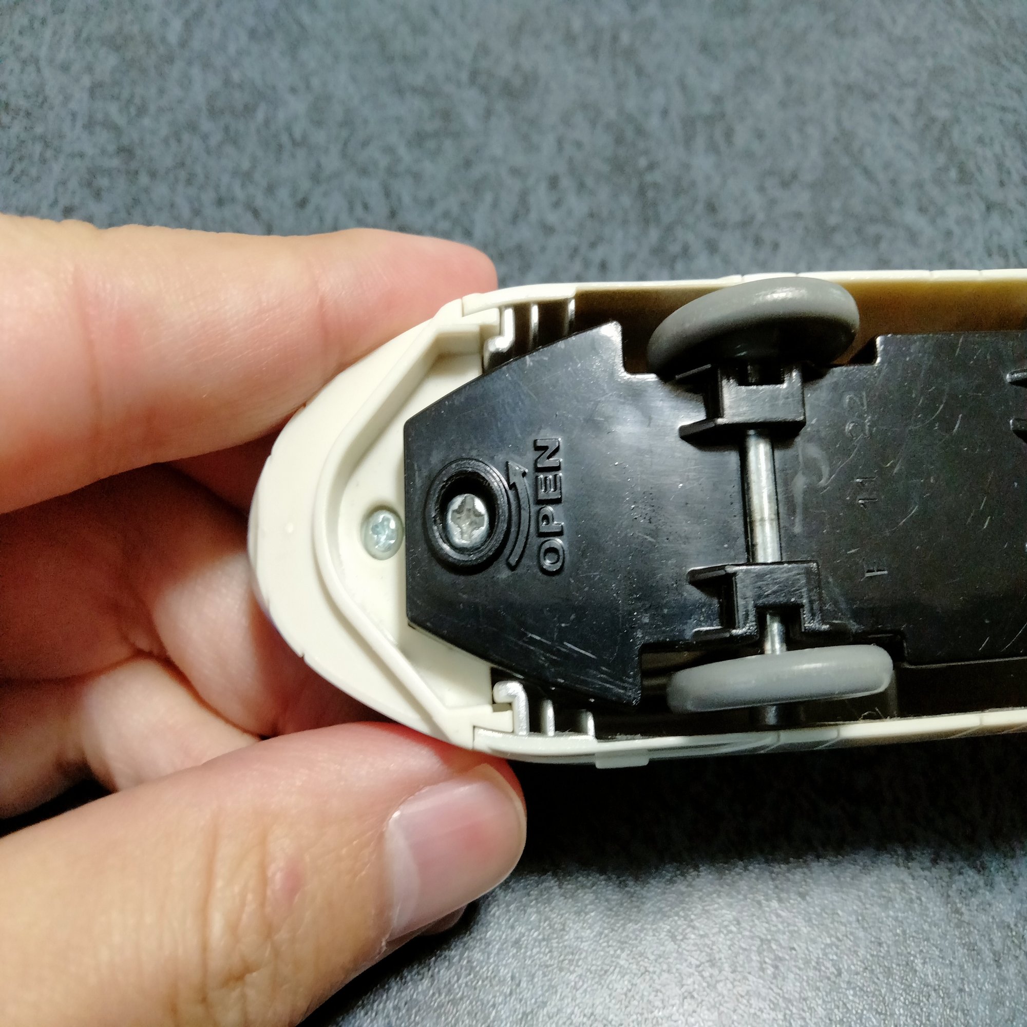 プラレール裏面にあるネジを外すと、ボディがパカッと開きます。