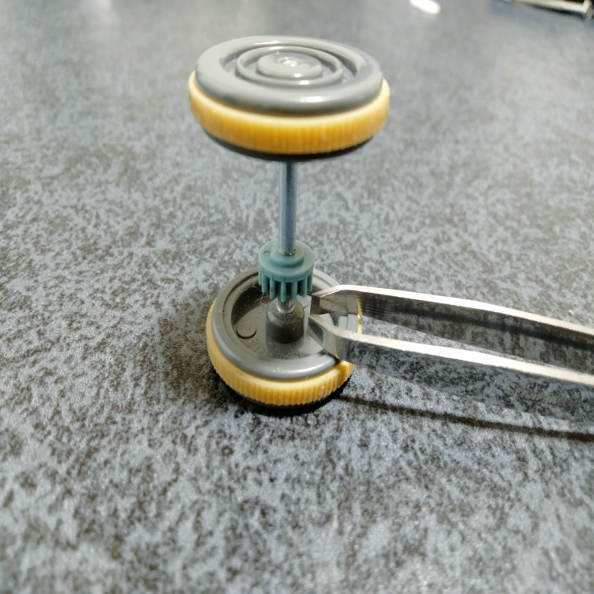 車輪の軸にホコリが絡んでいる